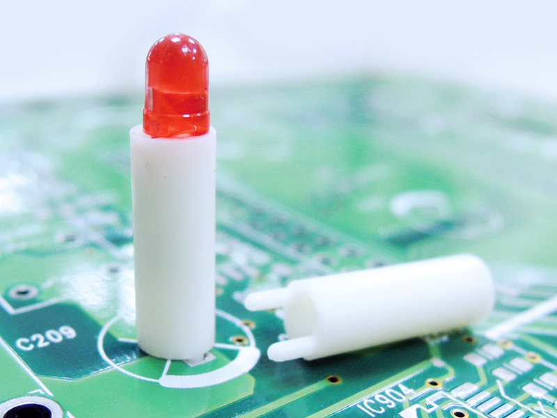 保护Ø3mm LED立于PC板上,使高度一致,中间隔板设计,接脚不会弯曲、折断、短路,有定位脚,不歪斜。